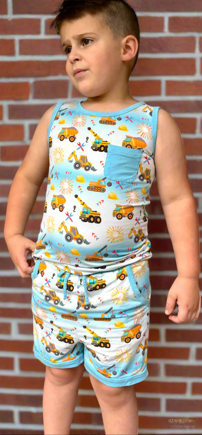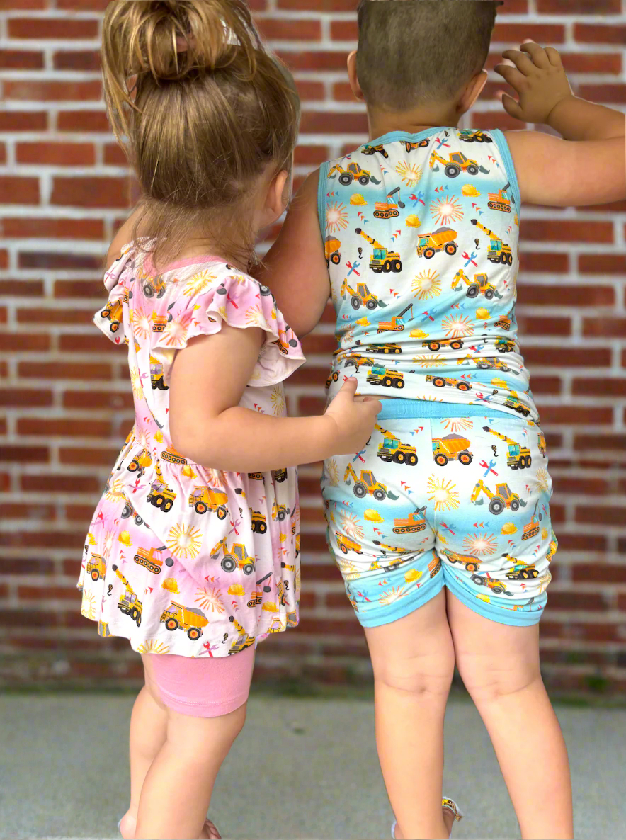 - Your favorite construction vehicles on a day wear set with shining suns!