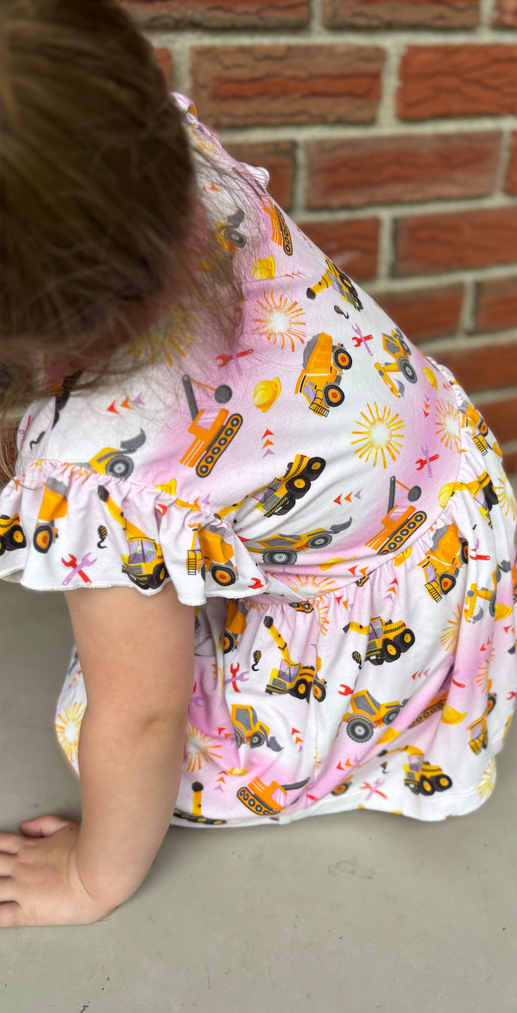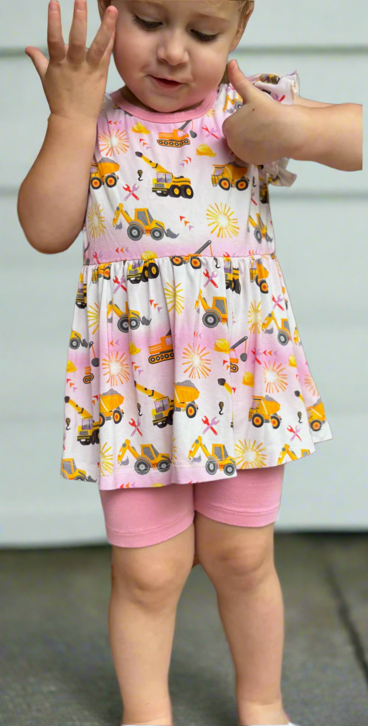 - Your favorite construction vehicles on a day wear set with shining suns!